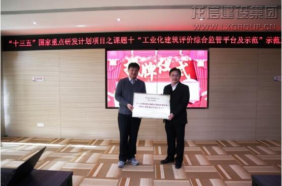 會(huì)議最后,由工業(yè)化建筑檢測(cè)與評(píng)價(jià)關(guān)鍵技術(shù)項(xiàng)目負(fù)責(zé)人,中國(guó)建筑科學(xué)研究院建筑工程檢測(cè)中心張仁瑜主任為龍信集團(tuán)三個(gè)十三五國(guó)家重點(diǎn)研發(fā)計(jì)劃綠色建筑及建筑工業(yè)化重點(diǎn)專項(xiàng)示范工程進(jìn)行授牌。